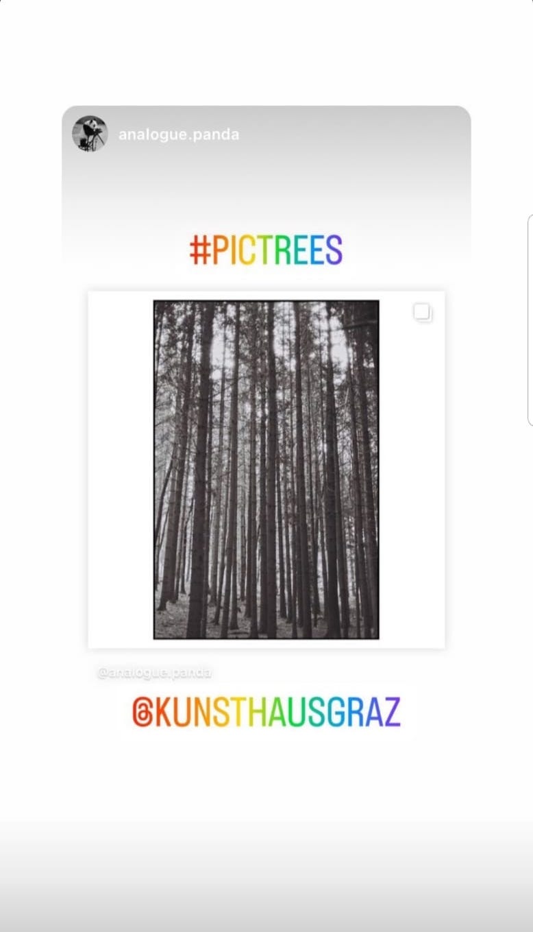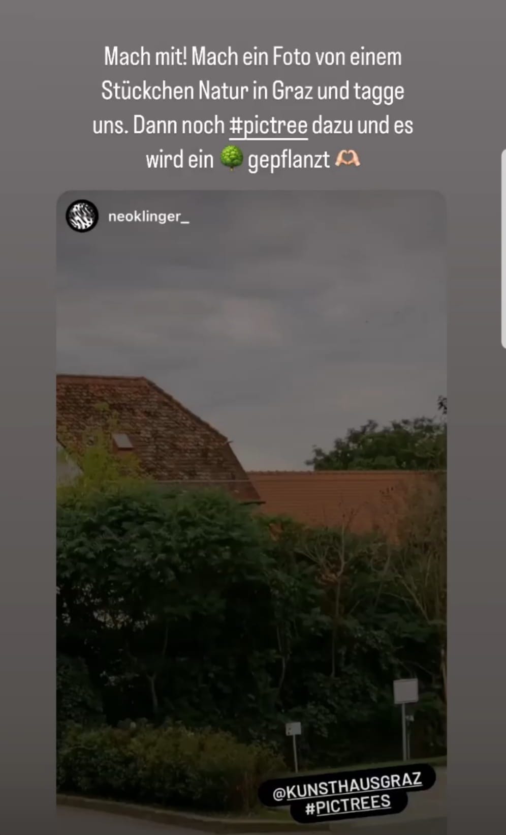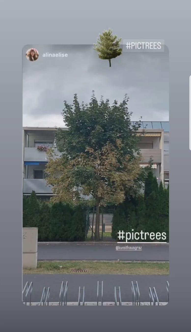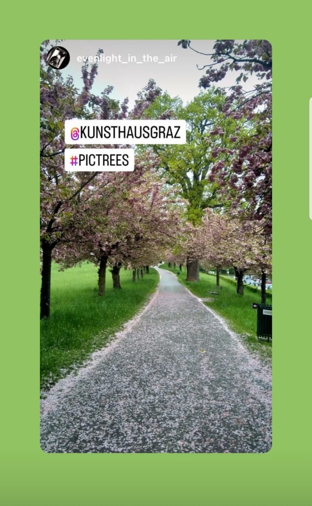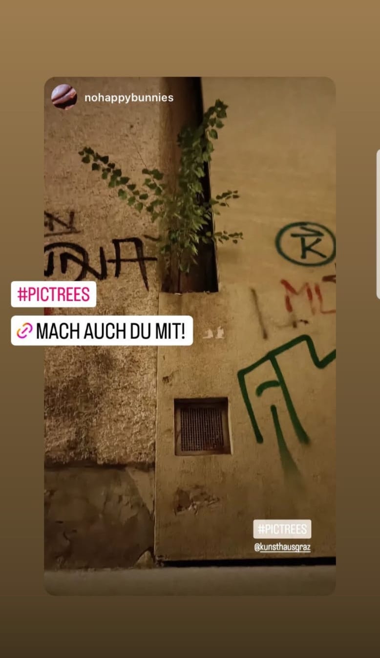 Teile es in deiner öffentlichen Instagram-Story, tagge den @Kunsthausgraz–Account und benutze #pictrees