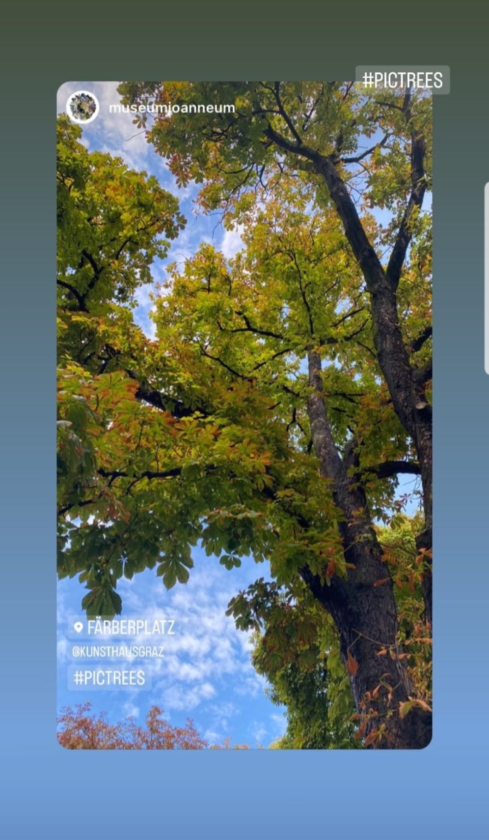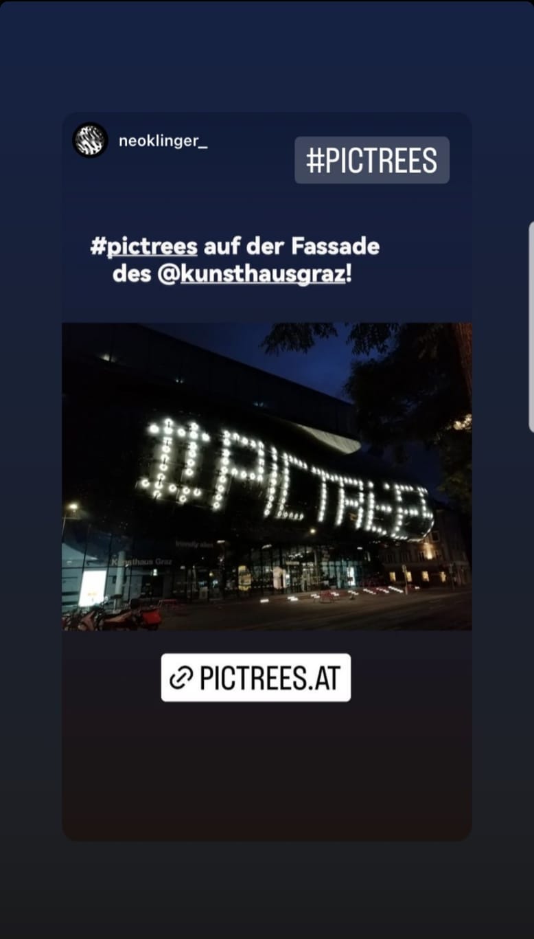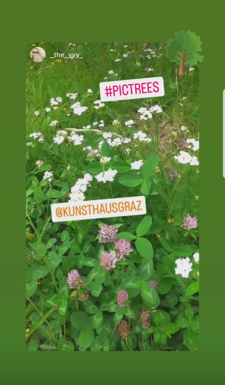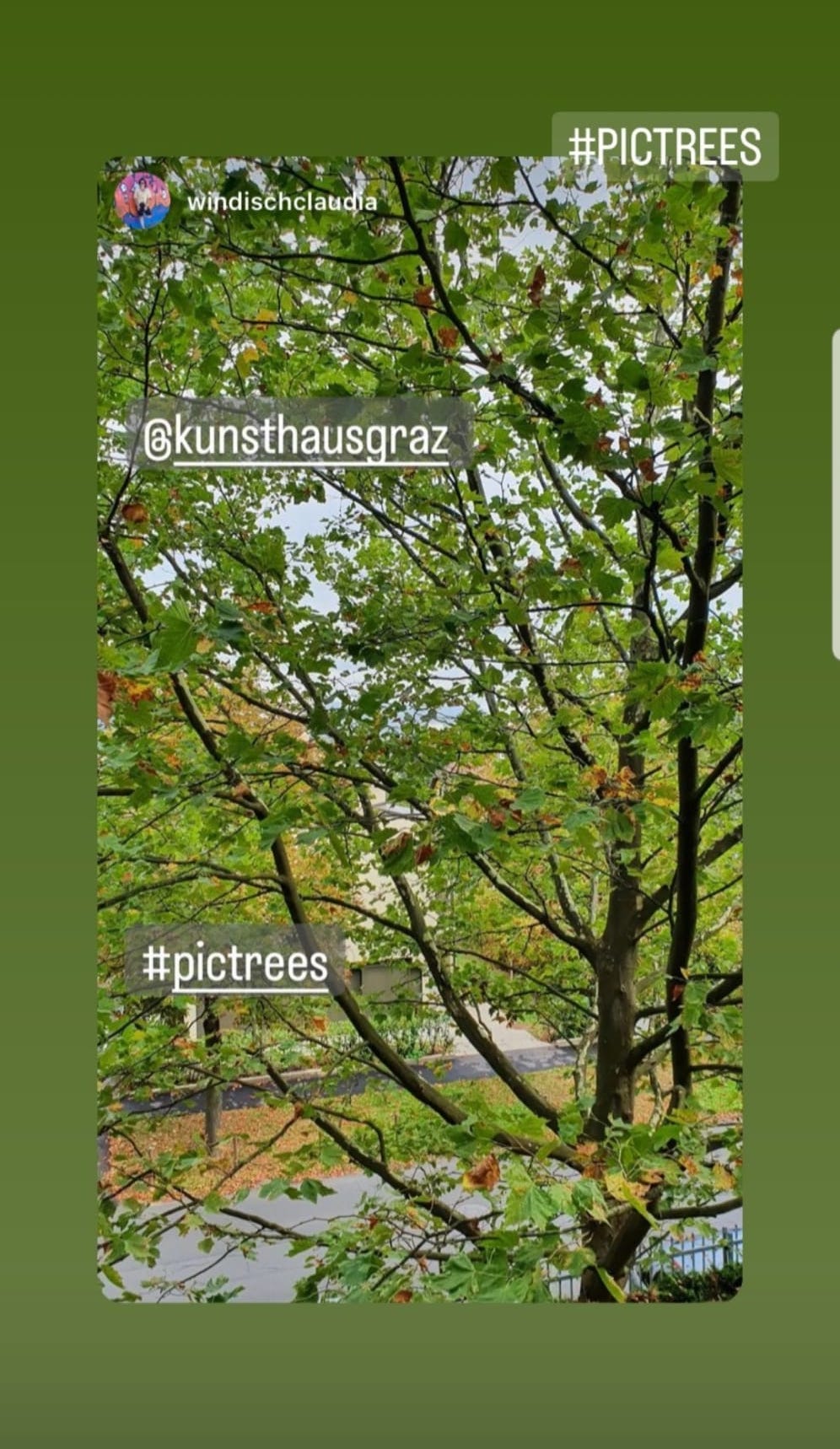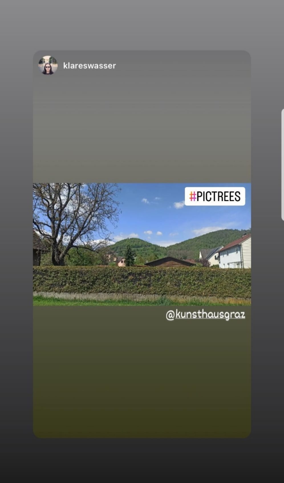 Teile es in deiner öffentlichen Instagram-Story, tagge den @Kunsthausgraz–Account und benutze #pictrees