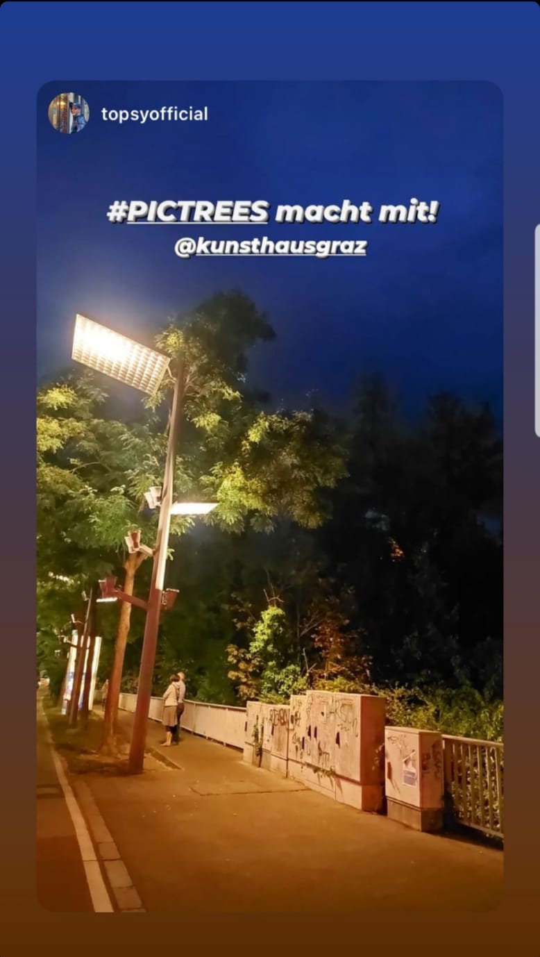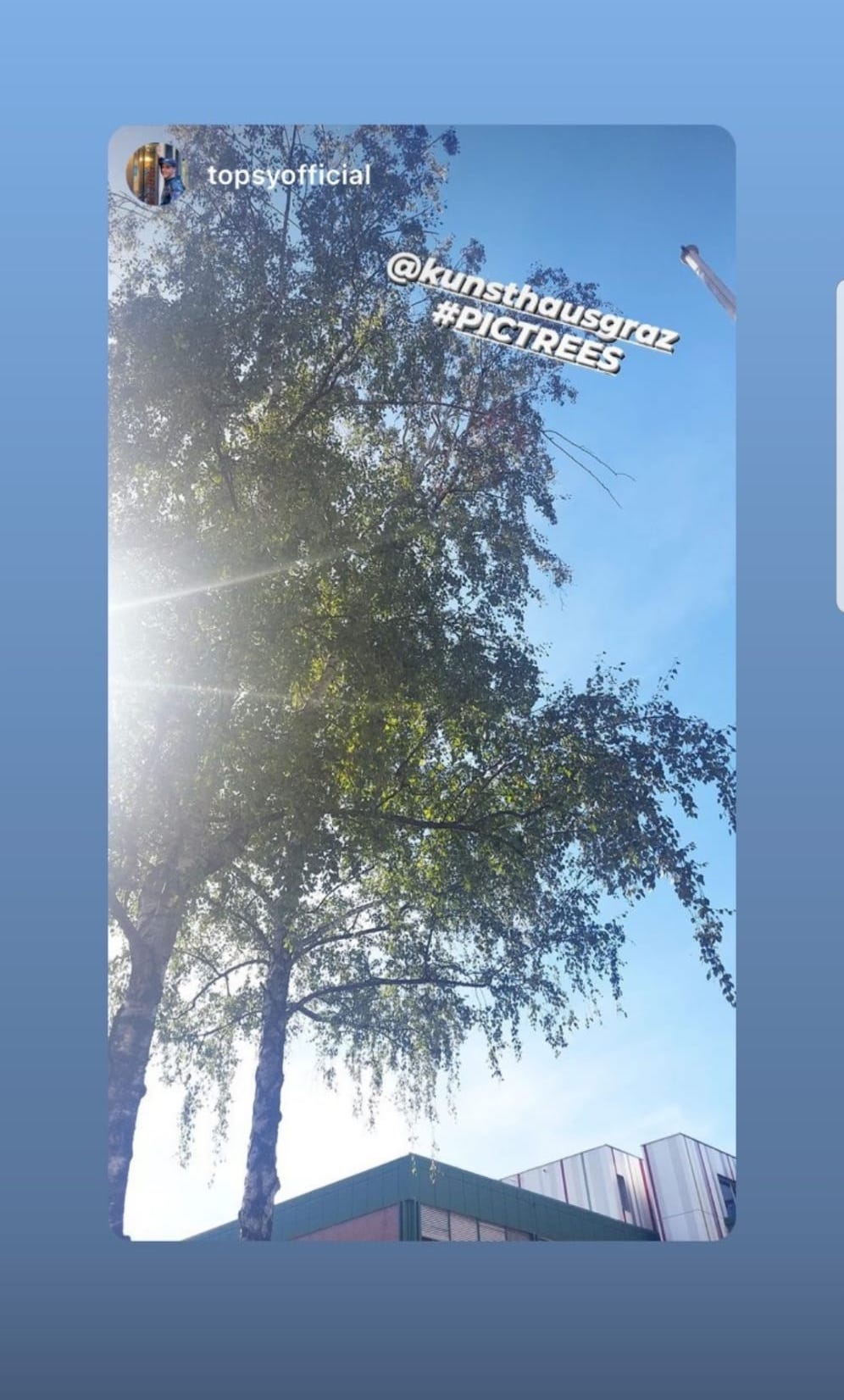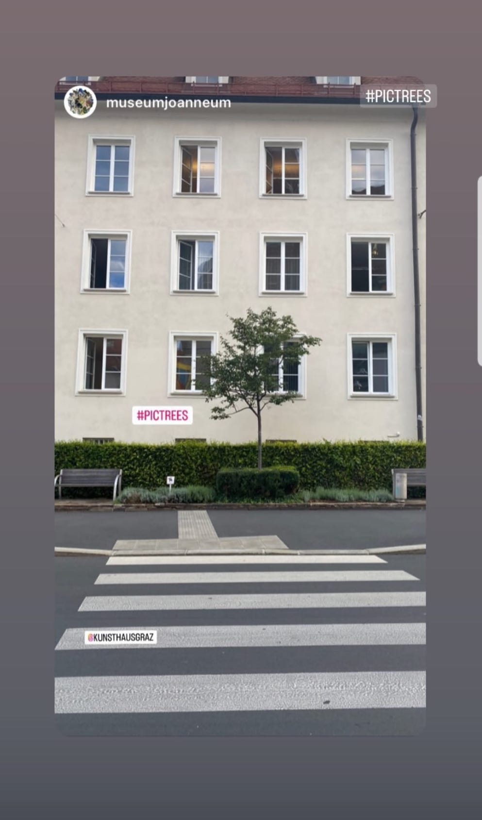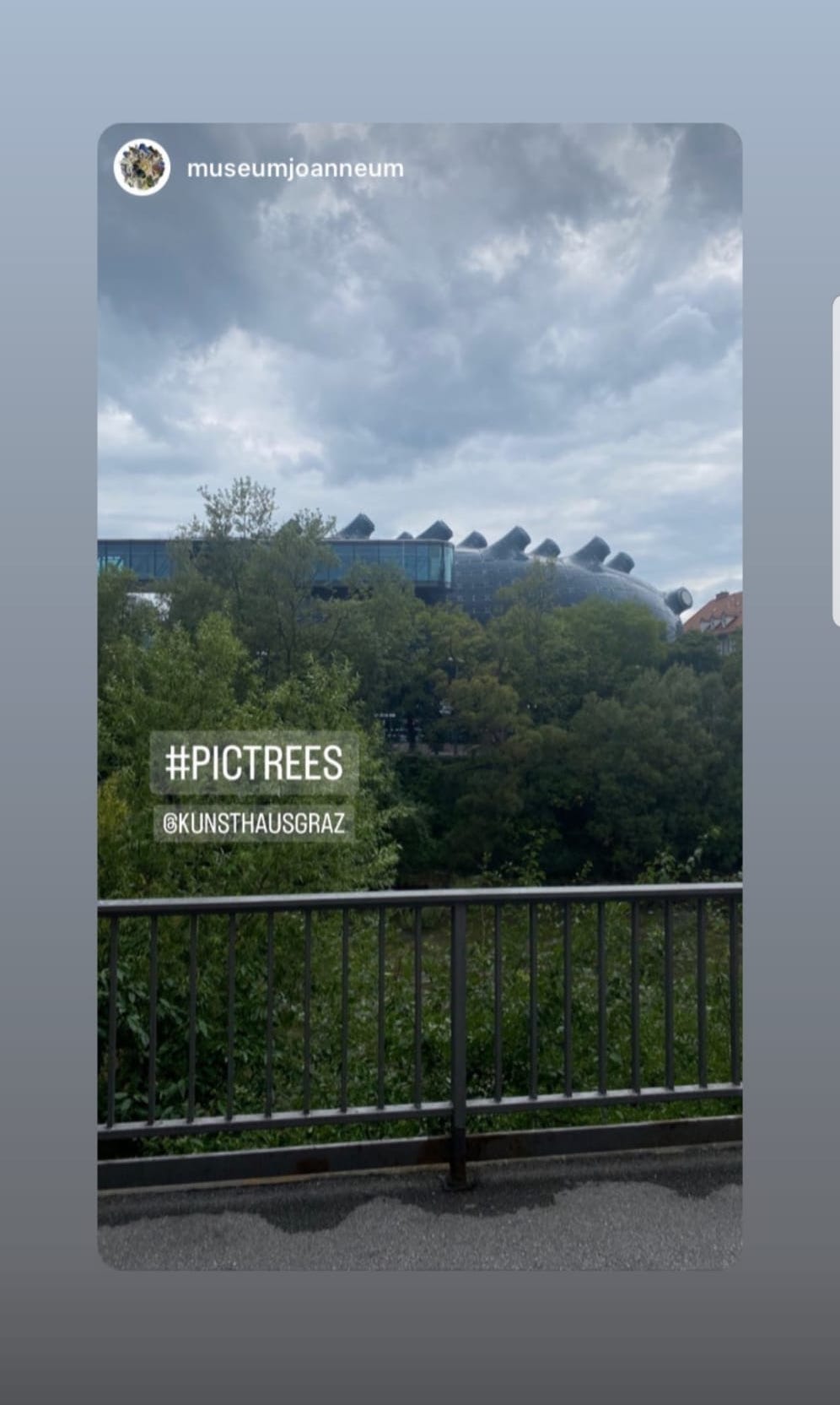 Teile es in deiner öffentlichen Instagram-Story, tagge den @Kunsthausgraz–Account und benutze #pictrees