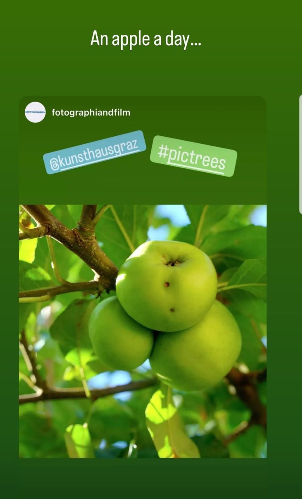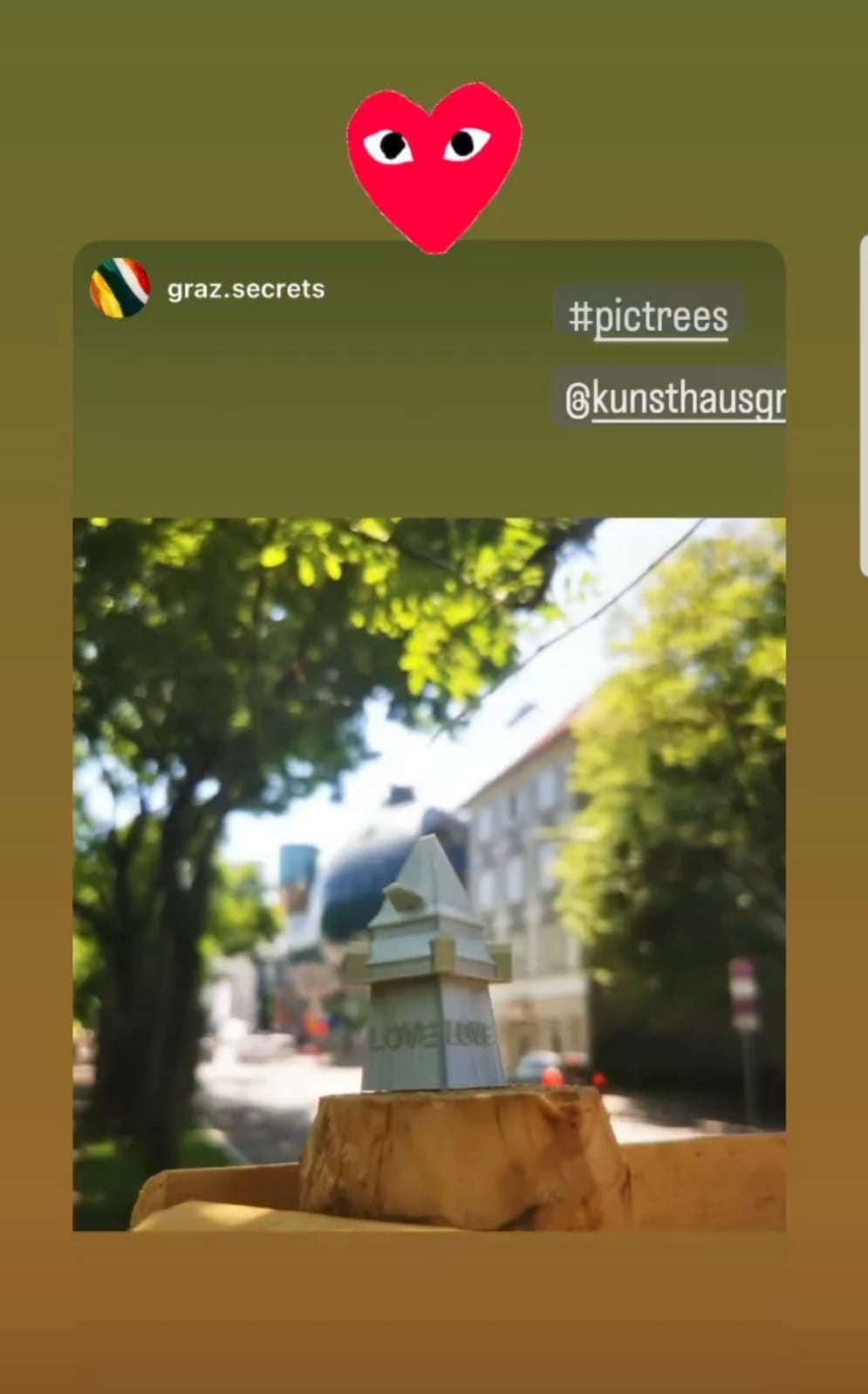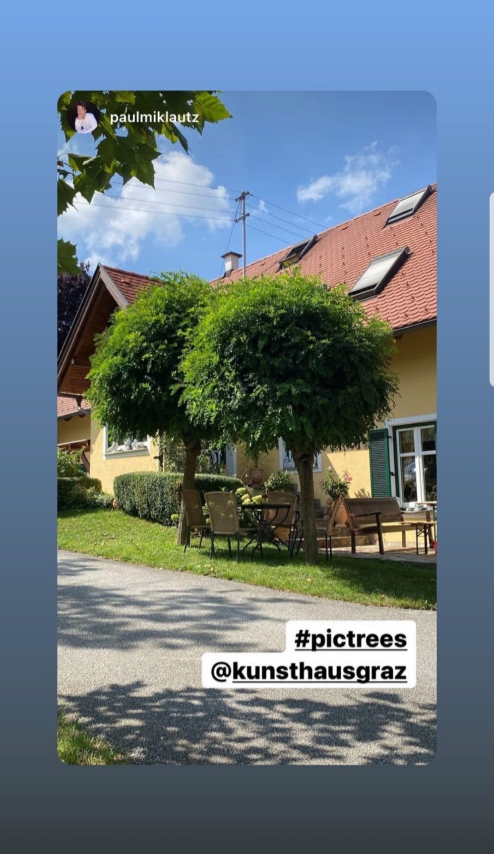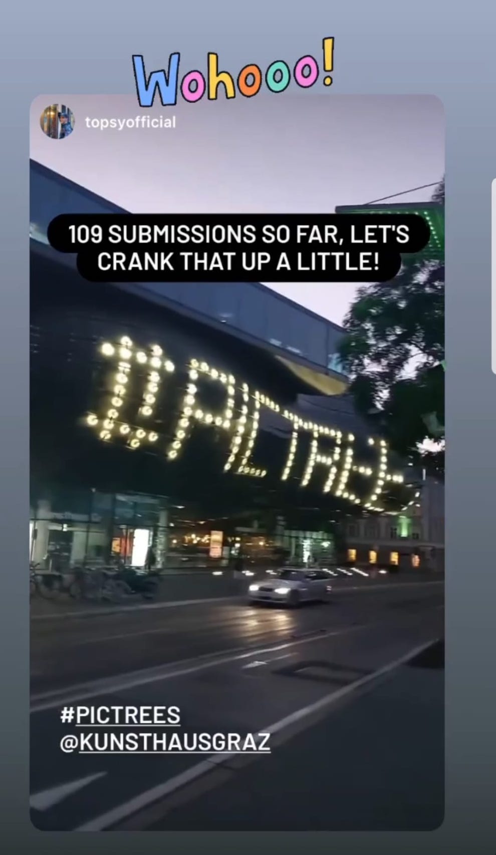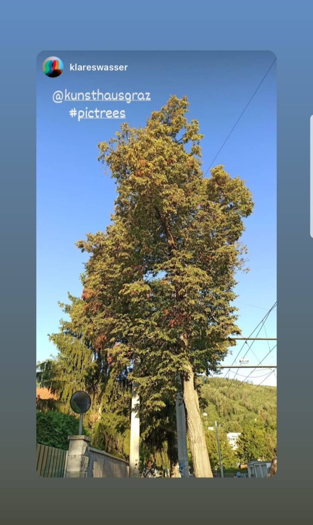 Teile es in deiner öffentlichen Instagram-Story, tagge den @Kunsthausgraz–Account und benutze #pictrees