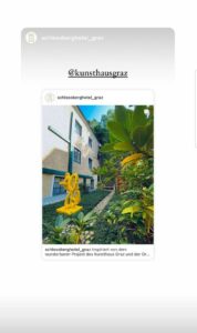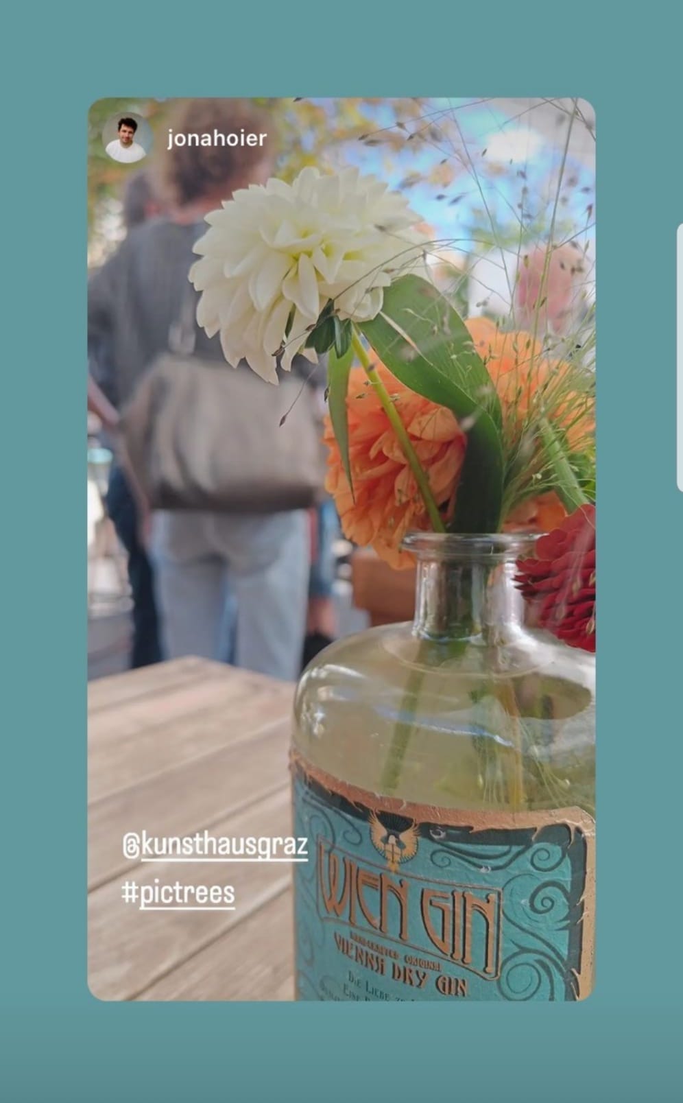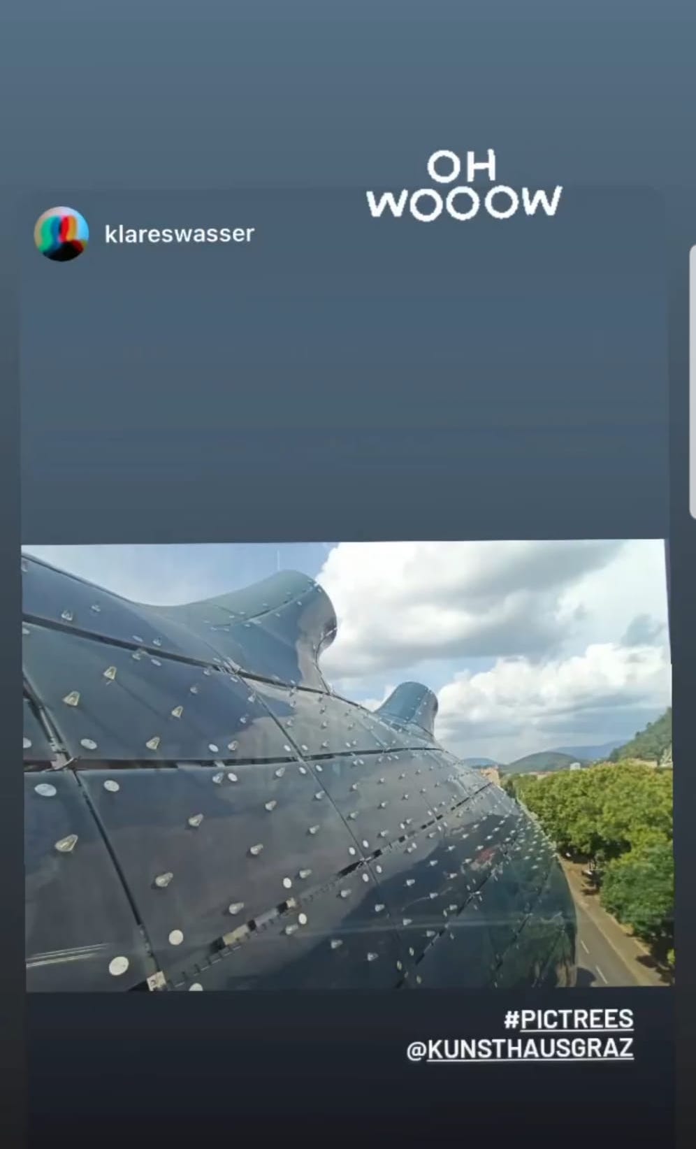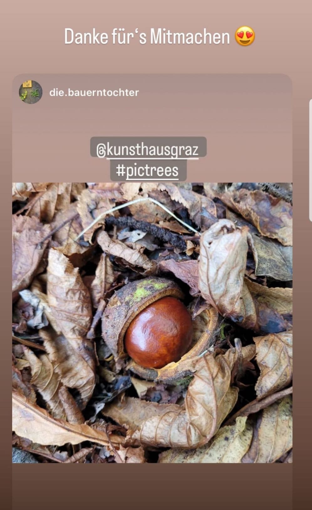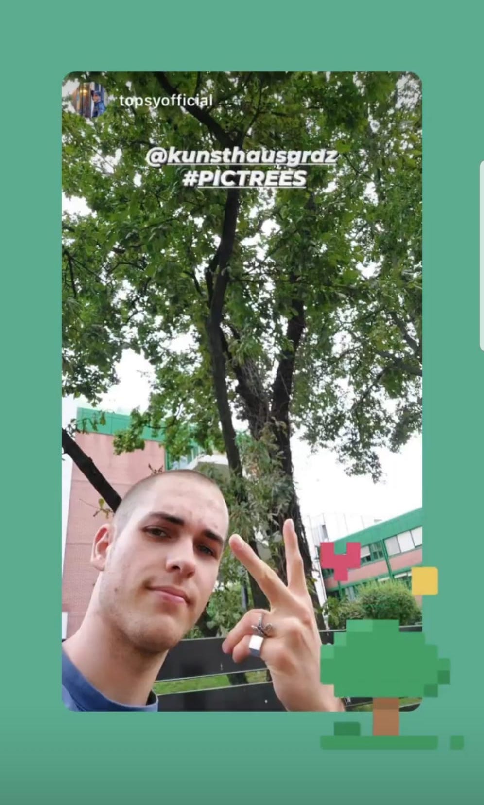 Teile es in deiner öffentlichen Instagram-Story, tagge den @Kunsthausgraz–Account und benutze #pictrees