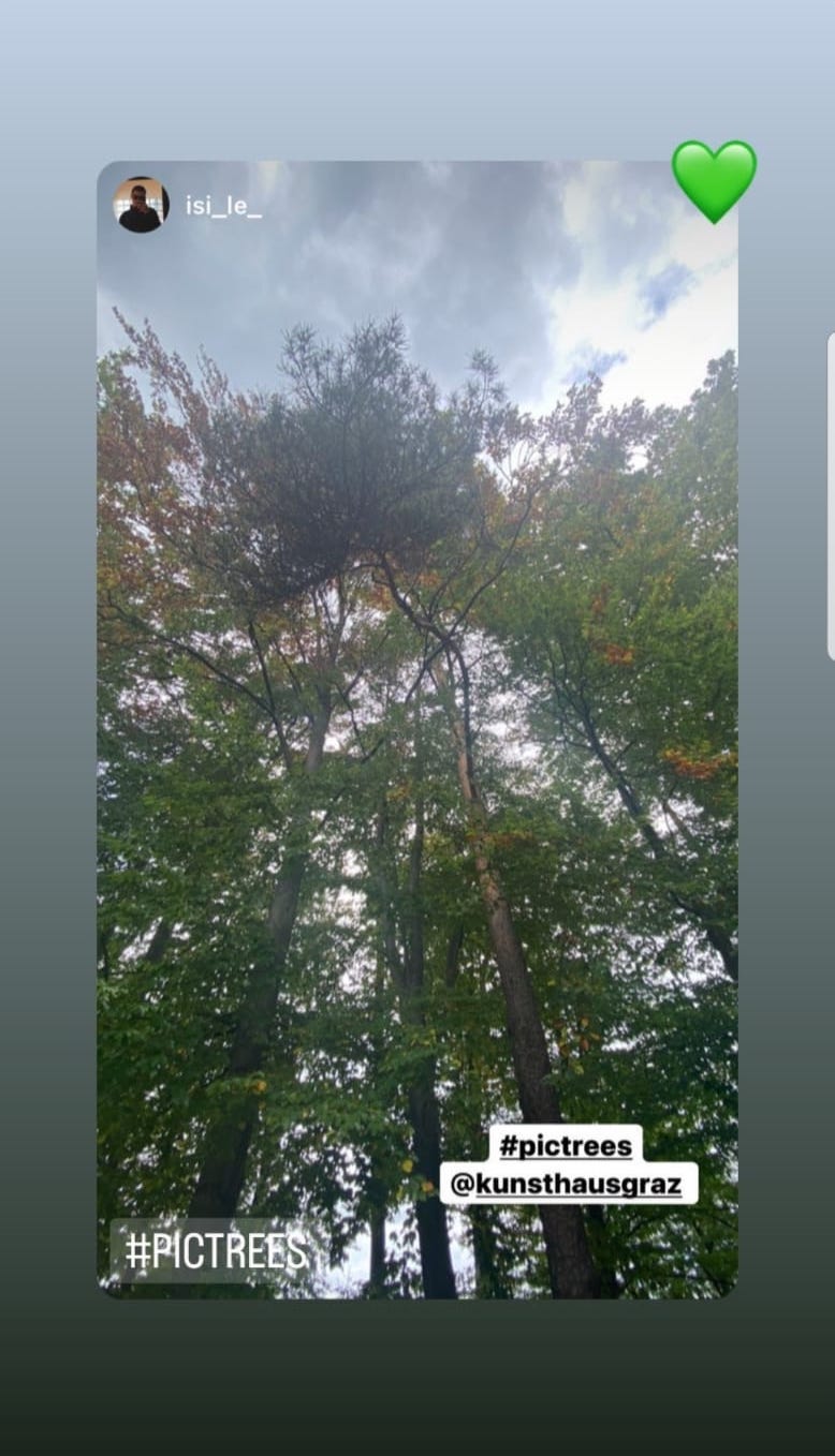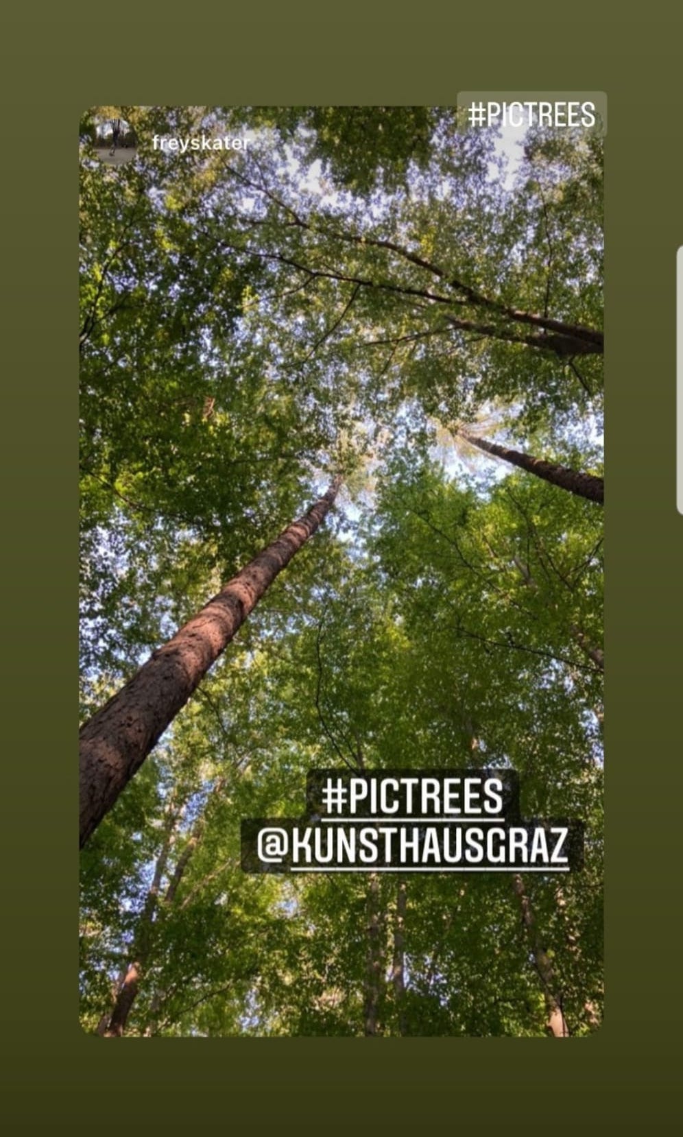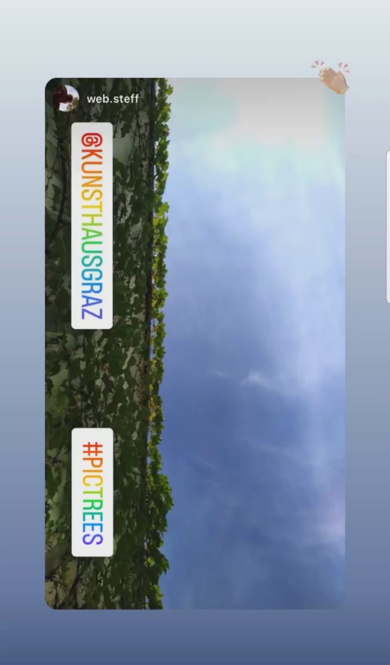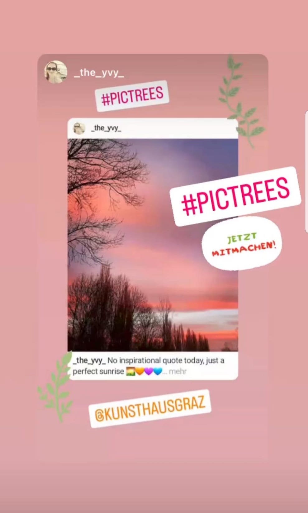 Teile es in deiner öffentlichen Instagram Story, tagge den @Kunshausgraz–Account und benutze #pictrees