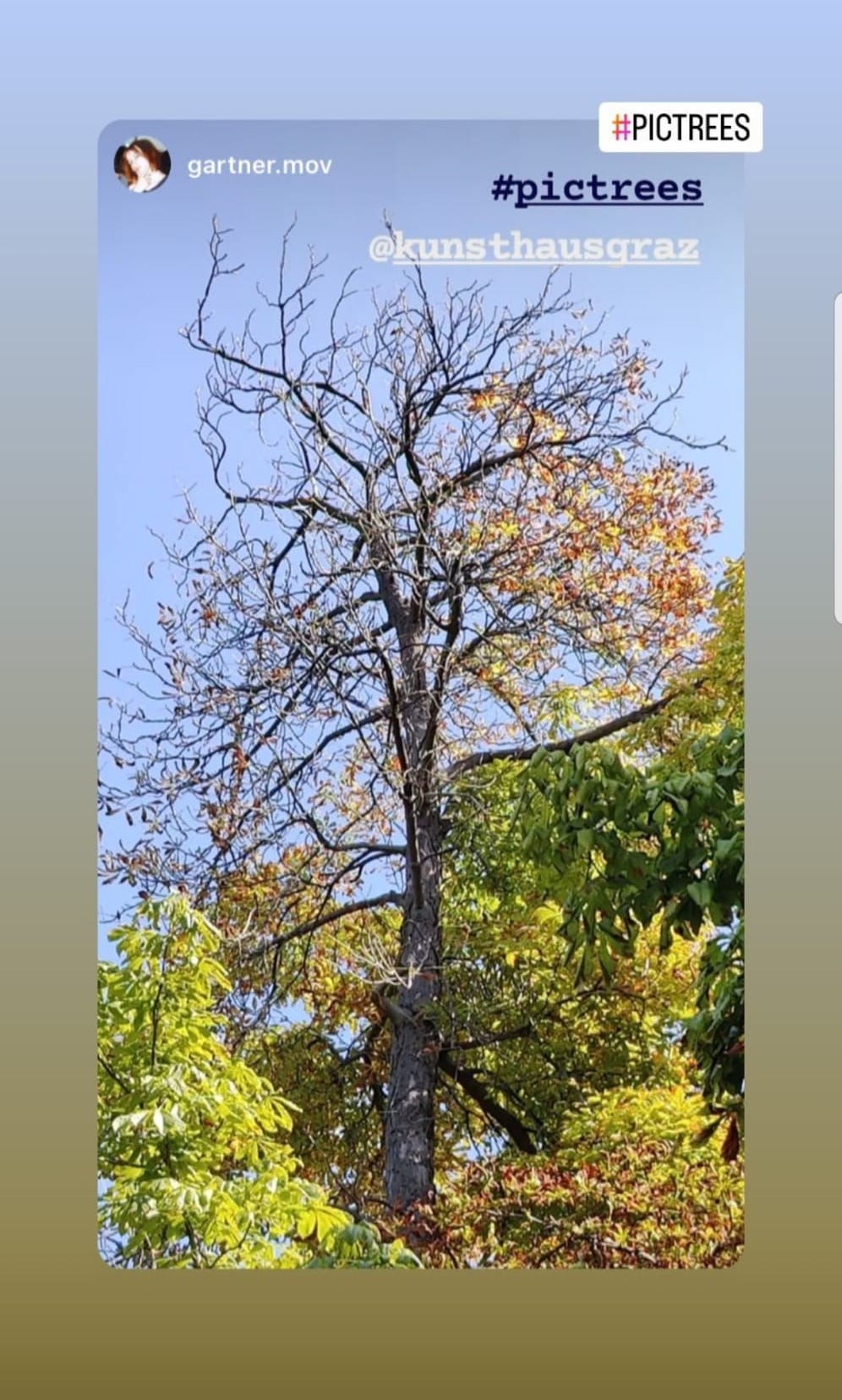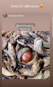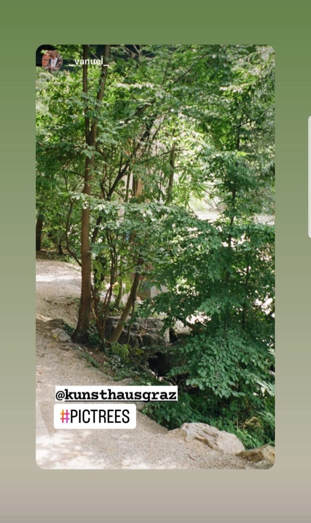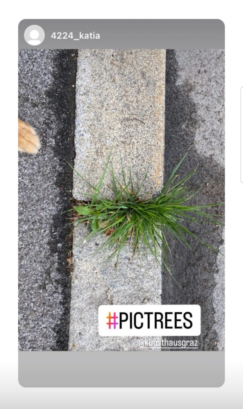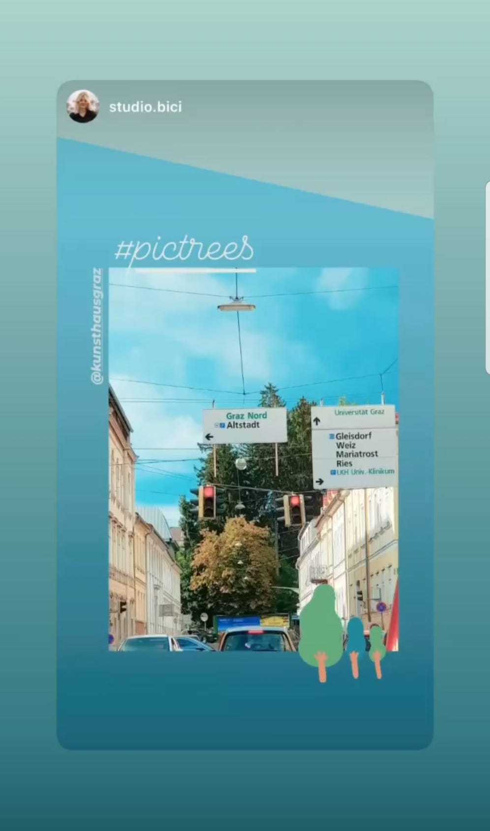 Teile es in deiner öffentlichen Instagram Story, tagge den @Kunshausgraz–Account und benutze #pictrees