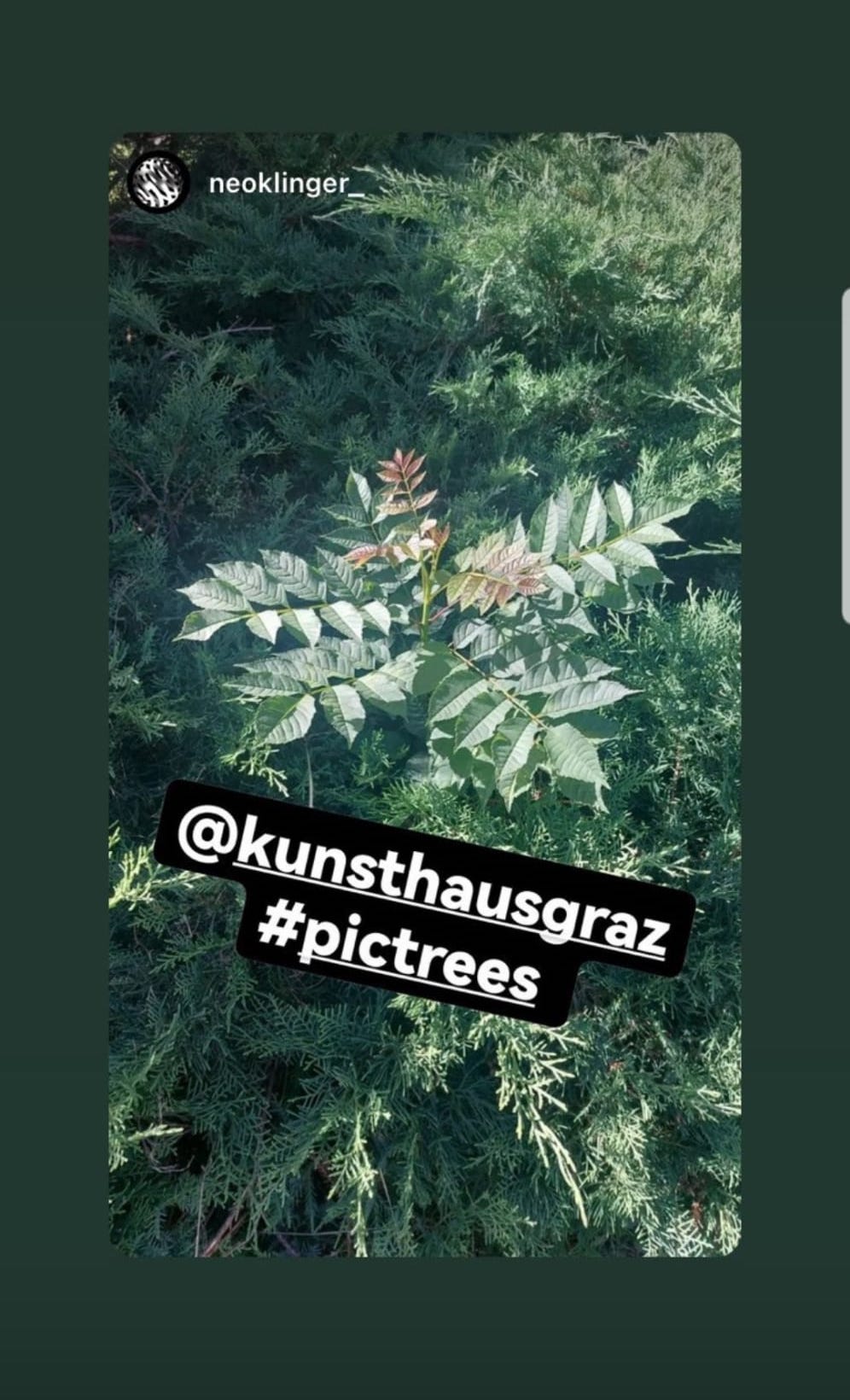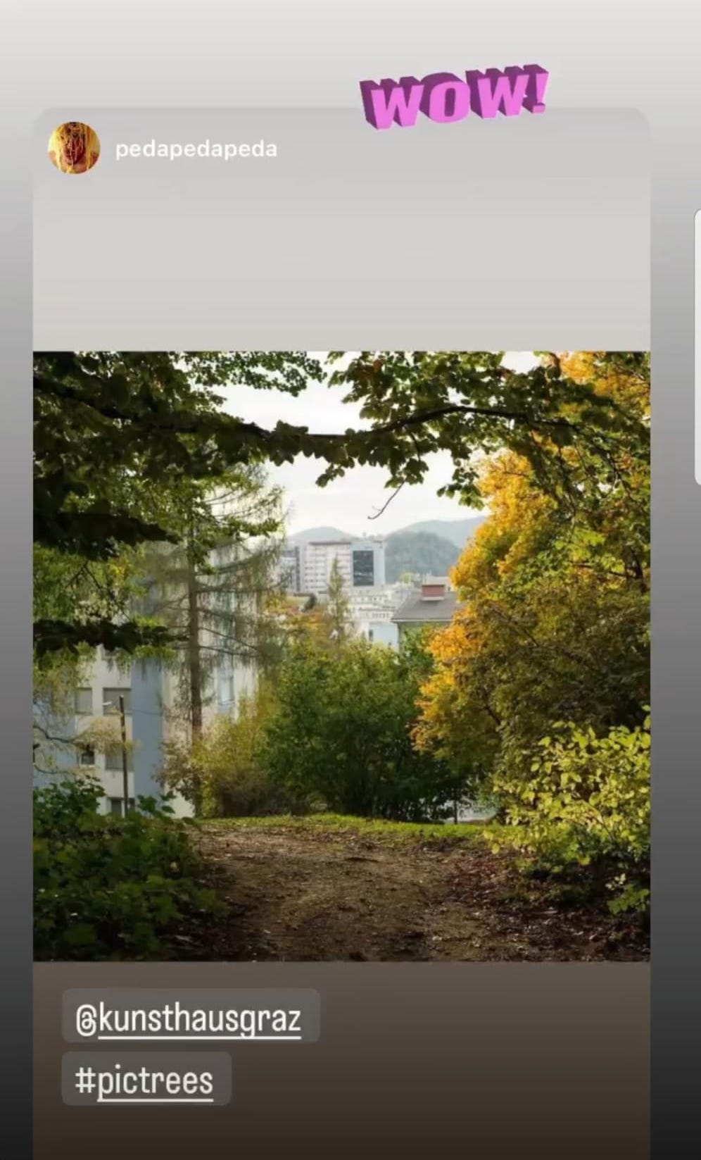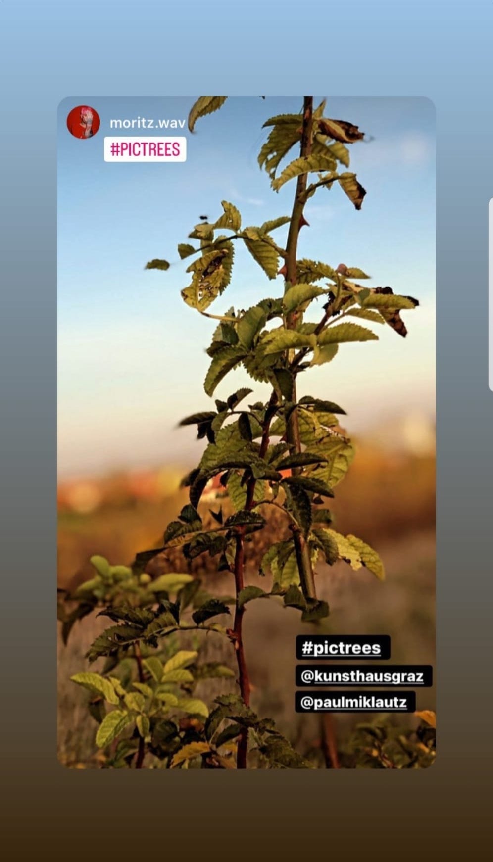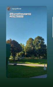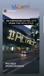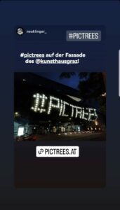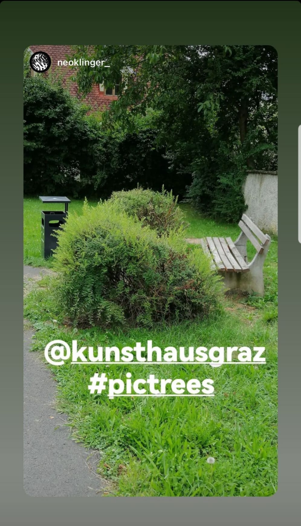 Teile es in deiner öffentlichen Instagram Story, tagge den @Kunshausgraz–Account und benutze #pictrees