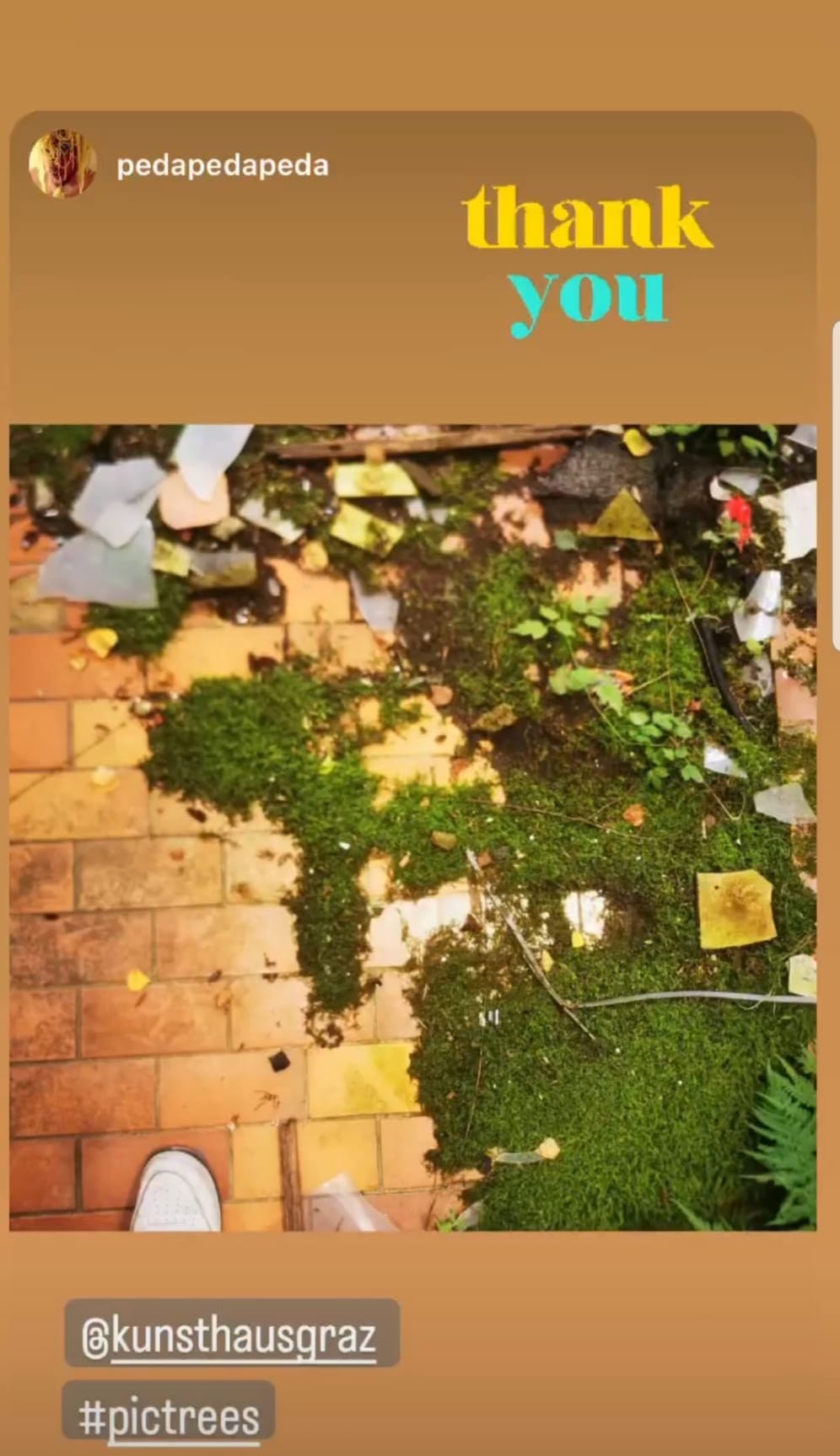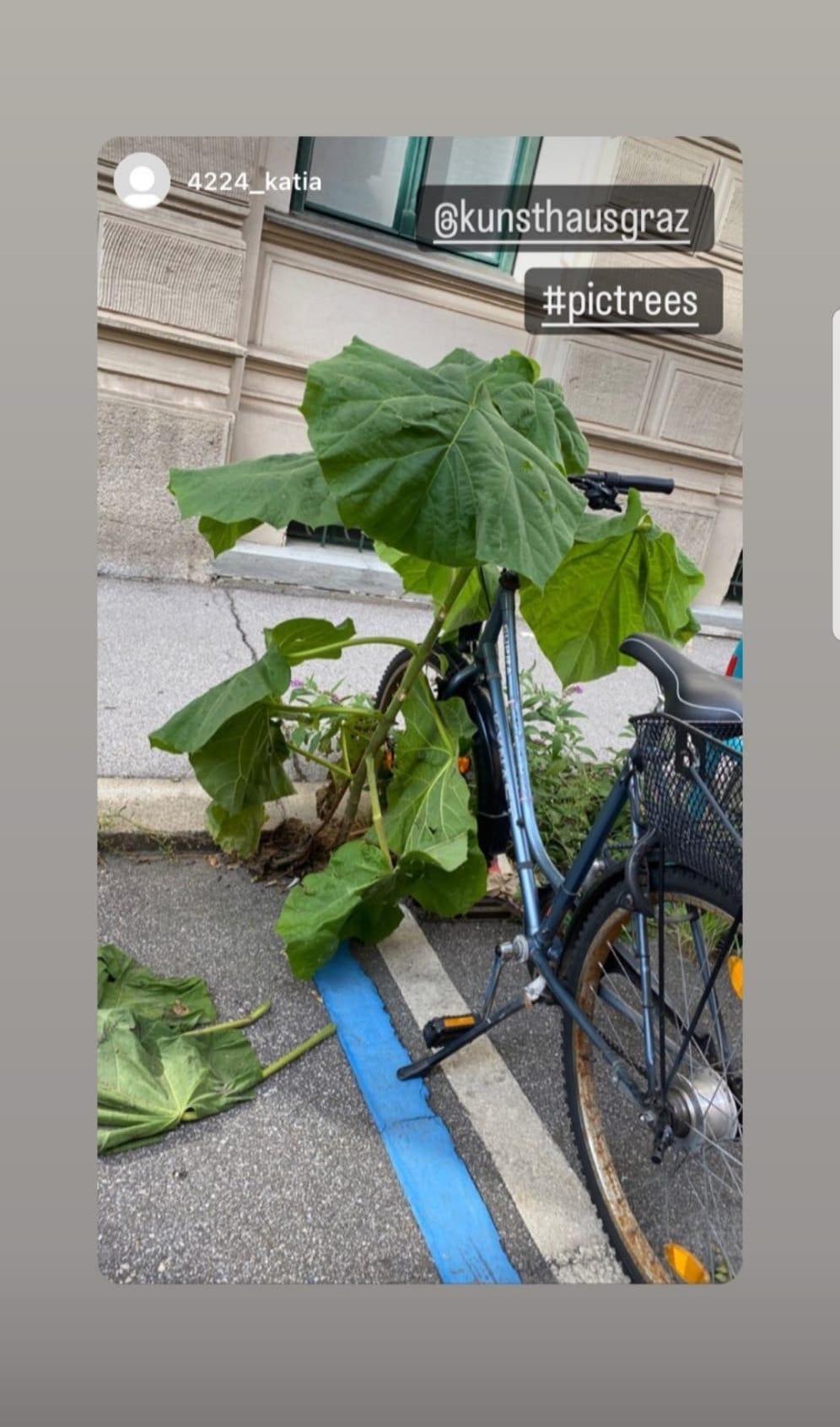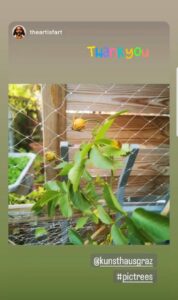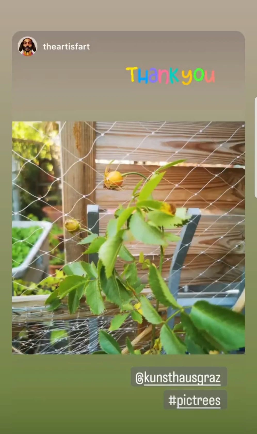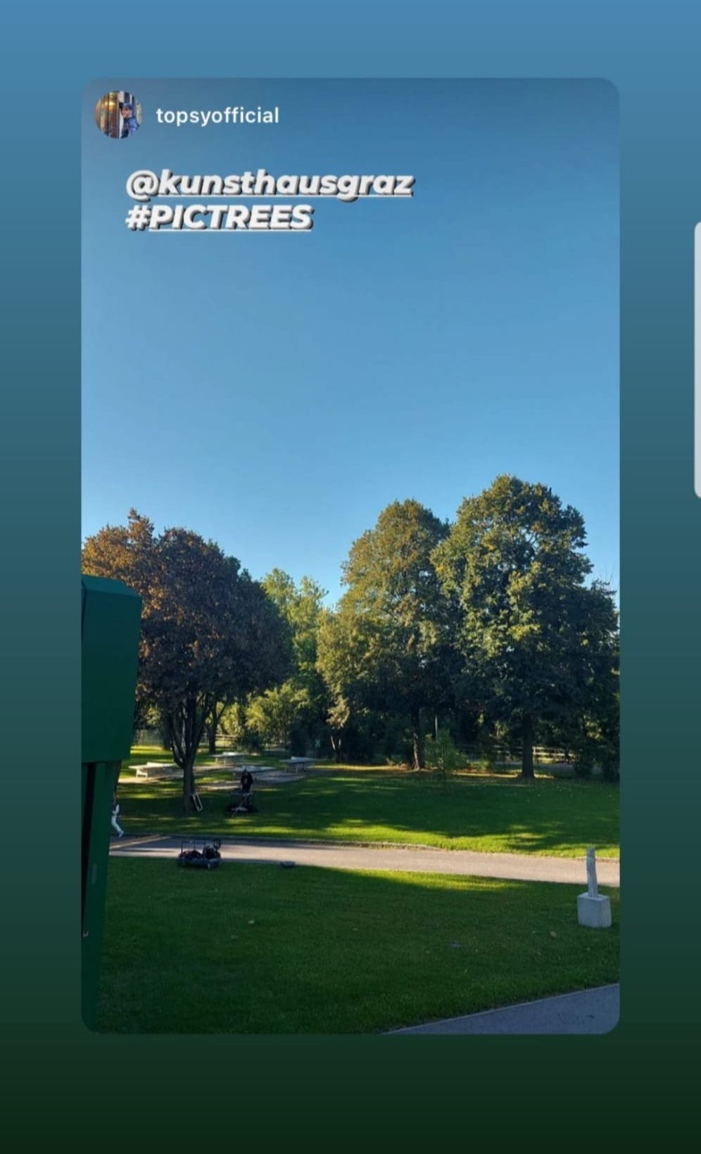 Teile es in deiner öffentlichen Instagram Story, tagge den @Kunshausgraz–Account und benutze #pictrees