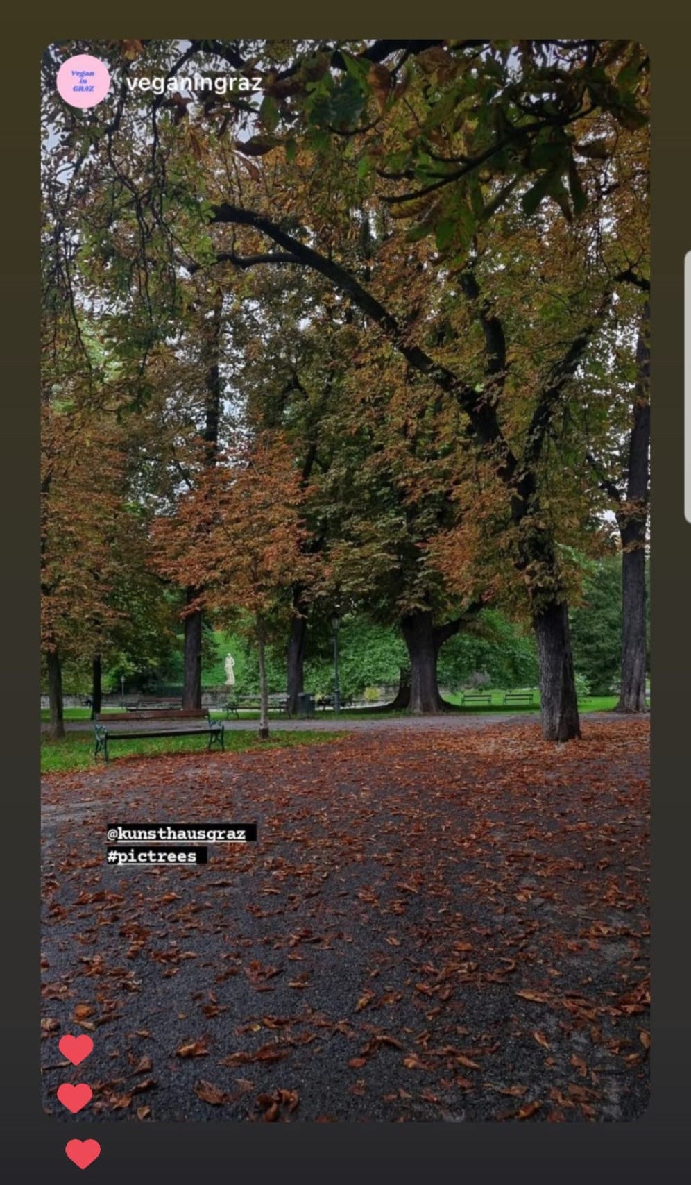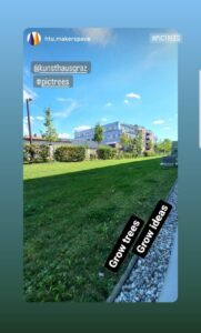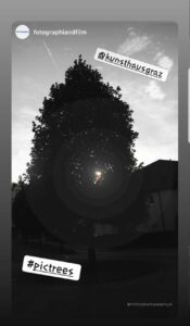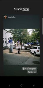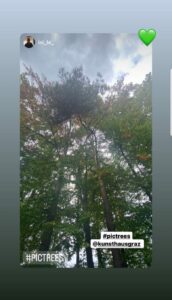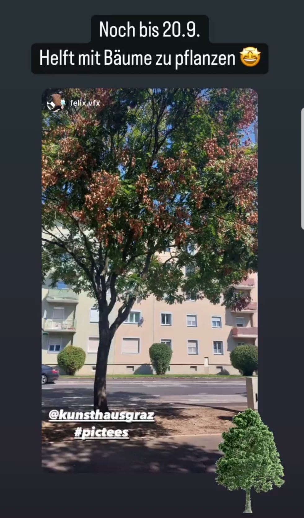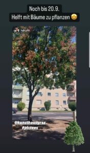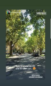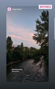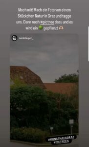 zeigt abends den aktuellen Stand aller gesammelten Fotos – jeder öffentliche Account kann hierbei pro Tag eine Story teilen. Nach Abschluss des Projekts wird in Zusammenarbeit mit der Abteilung für Grünraum und Gewässer der Stadt Graz für jedes 50. Foto auch ein Baum für die Stadt gepflanzt!